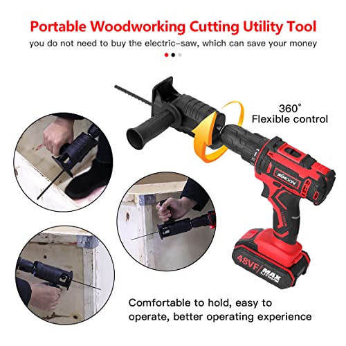 Reciprocating Saw Adapter Material Plastic + Iron Applicable Drill Electric Drill , Power Drill , Cordless Drill…. Blades Type T-Shank Jig Saw Blade Application Wood , Metal, Meat ,Plastic, …. NOTE !!! THIS IS THE ATTACHMENT OF DRILL, NEED TO INSTALL ON A DRILL THEN WORKING AS A SAW
