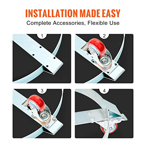 Easy Installation: We provide everything you need to install the oil barrel trolley, including 2 x universal wheels with brake, 3 x universal wheels, 20 x M8*16 screw bolts, 20 x flat washers, 20 x widened washers, 20 x hex nuts.