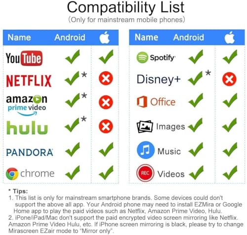 ✔Included components: 1 Wi-Fi mirrarcast HDMI Dongle, 1 Power Receiver usb cable and User Manual.