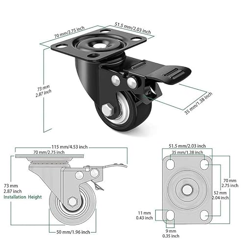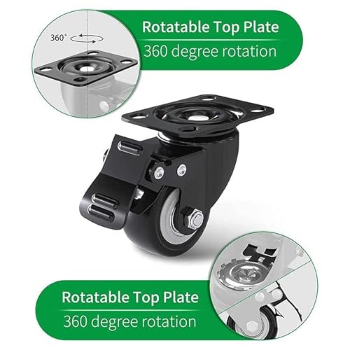 DOUBLE BALL BEARING CASTERS with DUAL BRAKE:The top plate swivel caster wheels have double brake, it can brake the rotation direction of the bottom plate and the direction of the wheel forward, which is easy to operate and relible