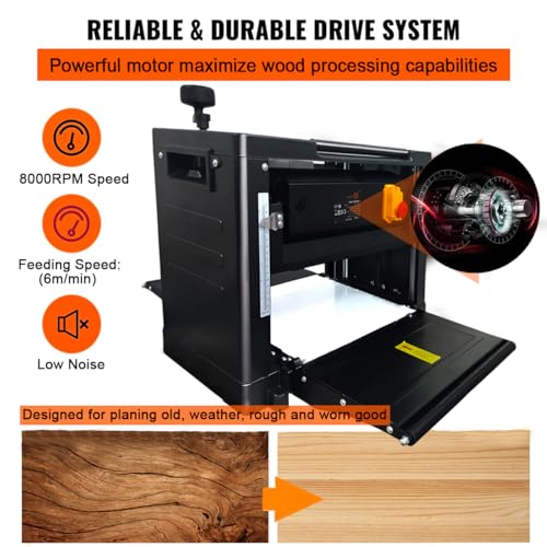Wide Cutting Capacity: Supports a maximum planing width of 330mm (13″) and planing height range of 6–160mm, ideal for a variety of woodworking projects.