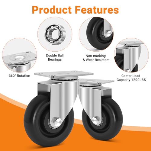 Robust Load Capacity: Experience the power of our cart casters with a robust 1200-pound load capacity (for all 4 casters), making pushing and moving items a breeze. Save time and energy for a safer and more efficient user experience.