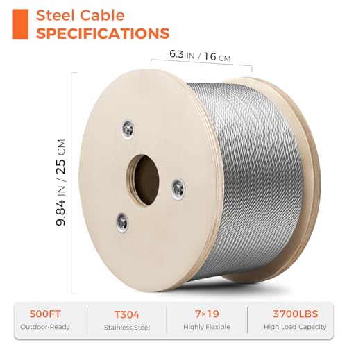 Load-bearing Capacity: This minimum breaking strength of 500ft stainless wire rope can be up to 3700 lbs, which allows for a variety of hanging, strapping and DIY activities