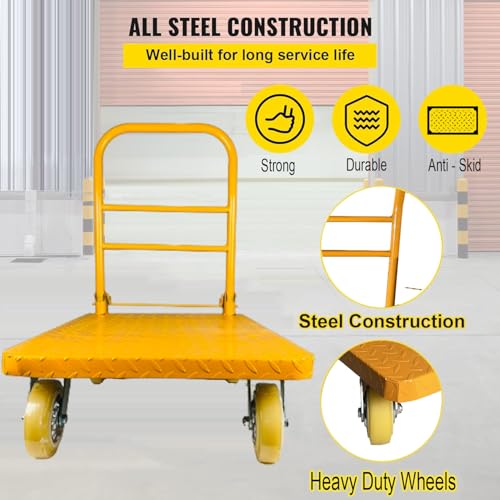[Quality Material]: Our platform cart with enhanced frame structure. Equipped with four high-quality aviation grade wheels, more flexible, labor-saving and more quiet. Ideal for daliy use.