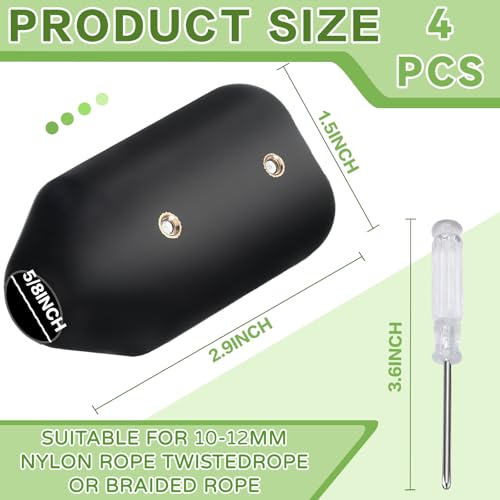 Suitable size: rope clip length is about 1.9 inches, width is about 1.1 inches, diameter is about 3/8 inches, suitable for 7-8mm nylon rope or braided rope, hemp rope, climbing rope, etc. Please check the size before buying
