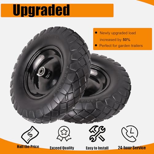 【FEATURES】 Upgraded 16″ Flat Free Wheelbarrow Tire: Say goodbye to frequent inflation and puncture with this 4.80/4.00-8 tire. Easy to repair and replace tires and save time and money. Please make sure your tire matches before purchasing