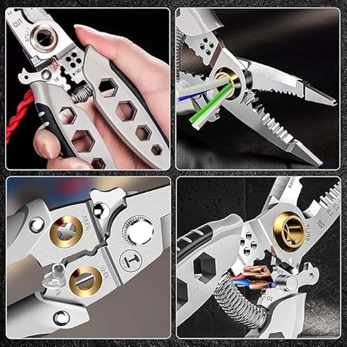 ♛【High-Quality 4 In 1 Wire Strippers】Forged with chrome vanadium steel, has high hardness, rust prevention, wear resistance, and durability. The screw hole position on the handle allows you to easily handle screws and nuts of 6mm to 13mm.