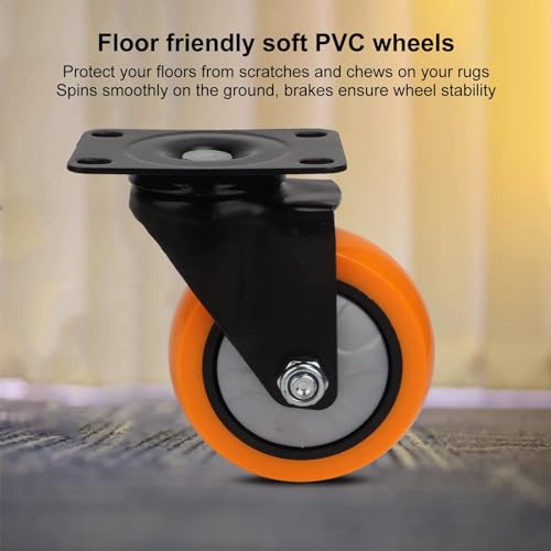 FLOOR FRIENDLY PVC MATERIAL: Extend the life of your floor with these floor friendly soft PVC wheels. Protect your floors from scratches and chews on your rugs, spins smoothly on the ground, and brakes ensure wheel stability