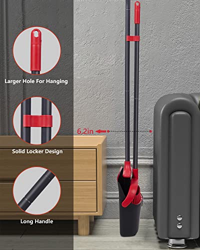 Saving Storage Space: Standing dustpan locks in open position for easy emptying, can easily dispose of dustpan’s contents into the garbage, compact broom dustpan set design lets you hang the broom and dustpan together on the wall, It is a great way to save storage space.