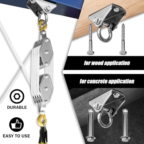 【Heavy Load Capacity】:This block and tackle pulley system is made of durable pulley and strong rope with 4400 lbs Loading Capacity for sturdy and smooth operation; You can lift both heavy and light stuff with this heavy-duty pulley