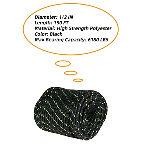 Optional – The diameter of the thick rope is 1/2 In, and the dimensions are 100 FT, 150 FT and 200 FT. The colors are black, yellow and orange. There are many options, there is always one that can meet your needs.