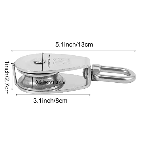 SOLID & DURABLE – The single pulley block is made of high quality 304 stainless steel. It has a beautiful appearance. The single pulley adopts solid in design, very sturdy and durable, anti-rust, wear-resistance, and corrosion-resistant.