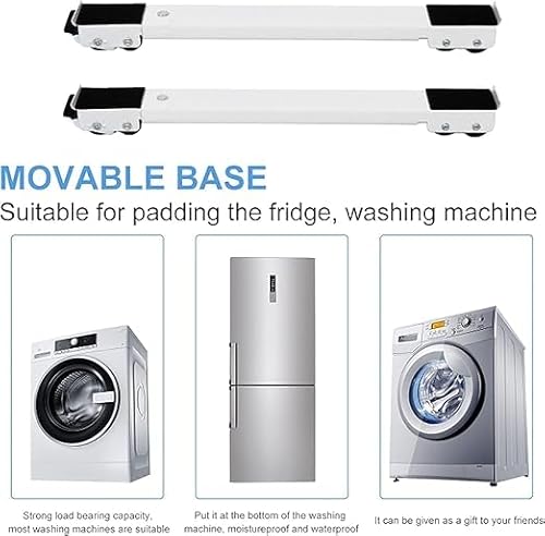 STABLE DESIGN: Multi functional movable base bracket, suitable for dryers, washing machines, refrigerators, air conditioners, heavy equipment, large flower pots, and can also be used for furniture and household appliances. With it, you can easily move these heavy objects and clean the bottom of the heavy objects without installation.